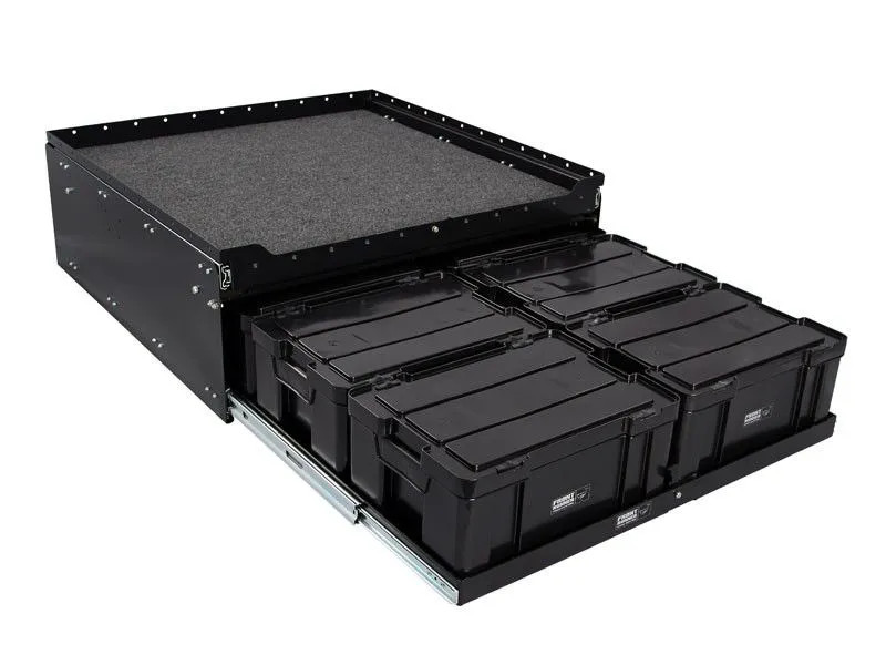 - The Front Runner 6 Cub Box Drawer with Cargo Sliding Top can be easily installed.