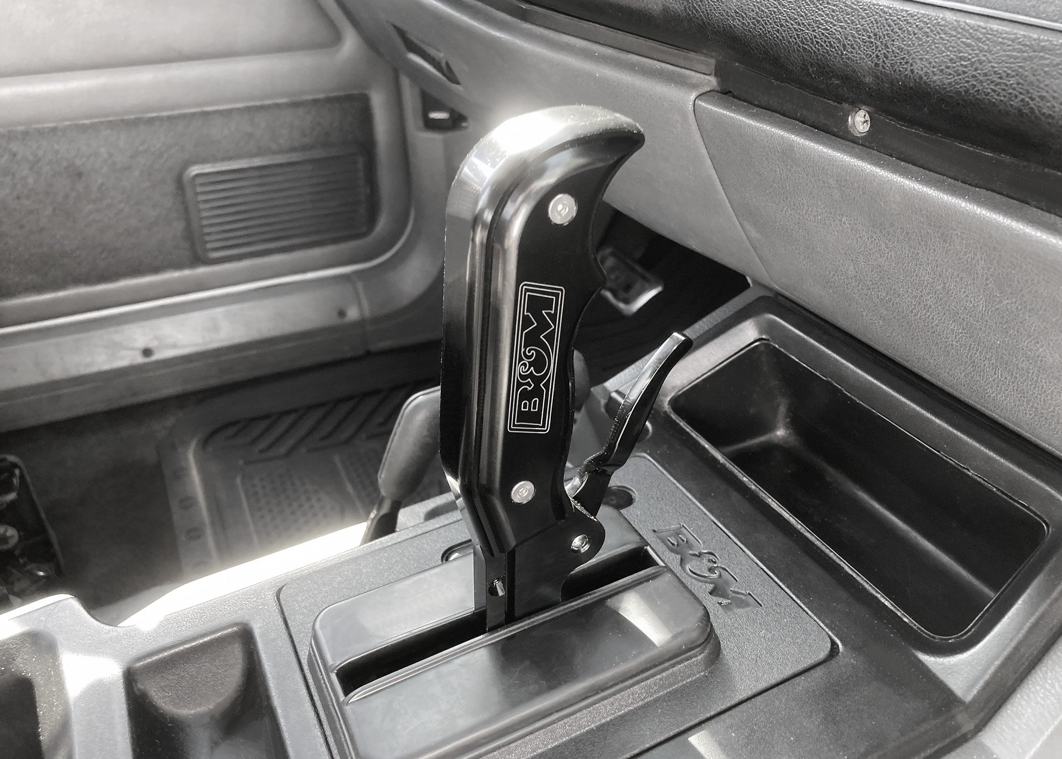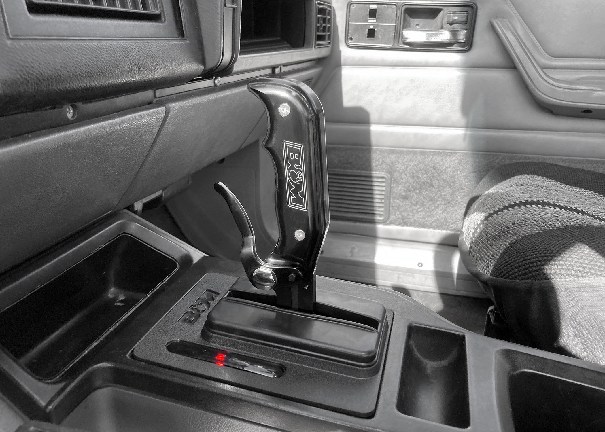 Introducing the new Stealth Magnum Grip™ Pro-Stick™ Off-Road shifter. This direct-fit console shifter is designed to fit Jeep TJ Wrangler, XJ Cherokee and MJ Comanche models with an automatic shifter in the factory center console. Our engineers took our race-proven Magnum Grip Pro-Stick shifter, added an Off-Road gate plate with multiple functions for off-roading, and finished it off with a factory looking console cover. The Off-Road gate plate offers many functions, one of them being while holding the trigger back, it allows you to quickly and easily shift back and forth from Drive to Reverse, creating a rocking motion to get you out of difficult off-road situations. And for normal crawling, you won't ever have to worry about accidentally bumping the shifter out of gear. See the installation instructions for various shift functions. The CNC machined billet aluminum Magnum Grip handle has an ergonomic fit & feel and features replaceable side grip plates along with a MIL-Spec black anodized finish for good looks and durability. The B&M console cover has a clean factory look with a lighted gear indicator lens. Shifter includes a Super Duty shift cable, all brackets, levers and easy to follow instructions.