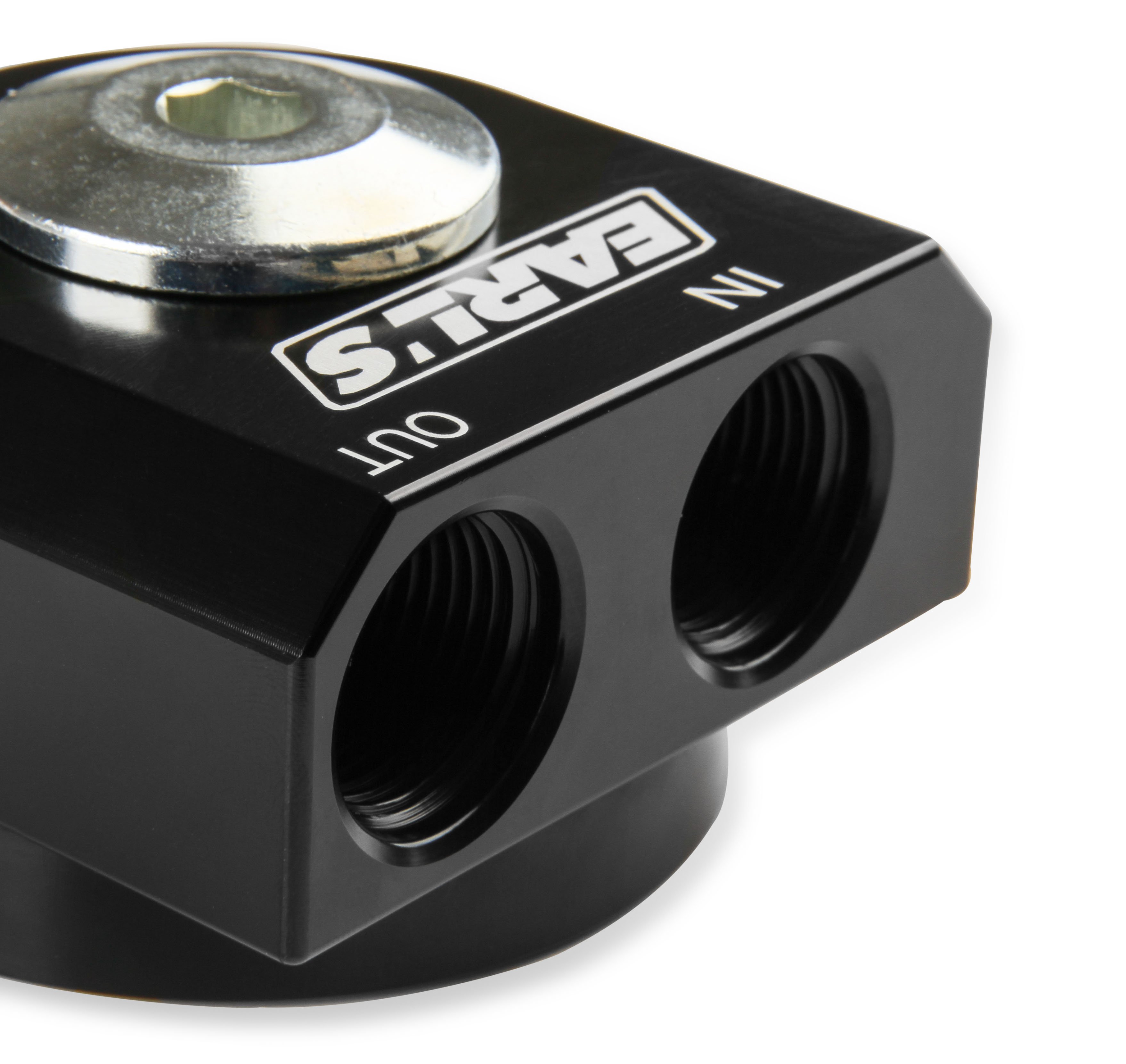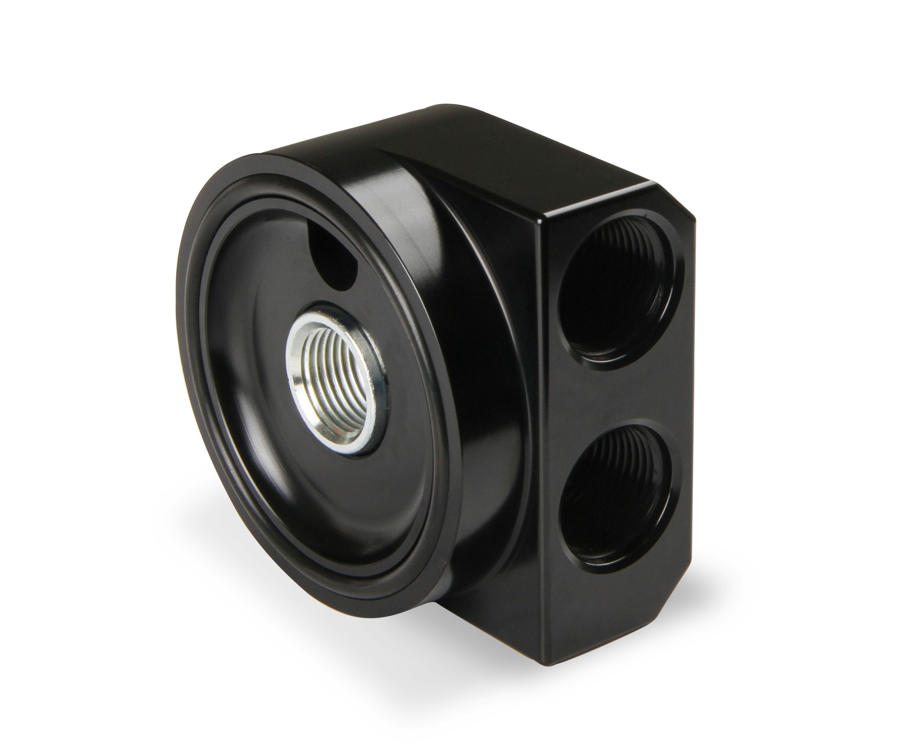 Earl's oil filter adapter allows you to relocate the oil filter to another location for better access or extra clearance. This adapter fits in plate of the oil filter and features -10 AN Female O-ring ports - use w/ O-ring port adapters (available separately). CNC machined from billet 6061-T6 aluminum, w/ black anodized finish.