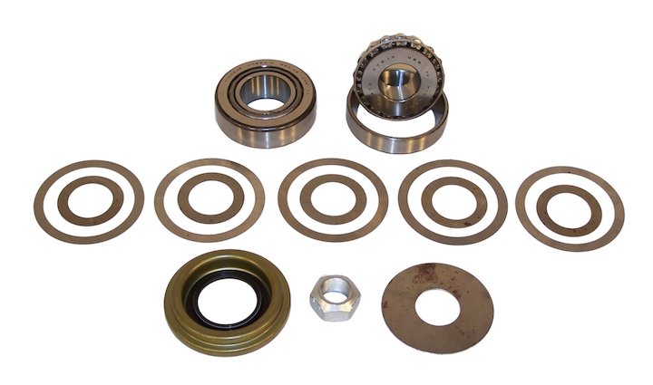 This kit includes: Inner/Outer Bearings, Seal, Slinger, Nut, Shims.